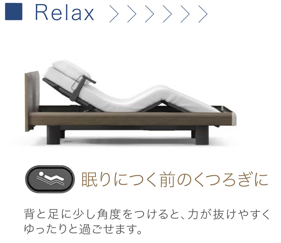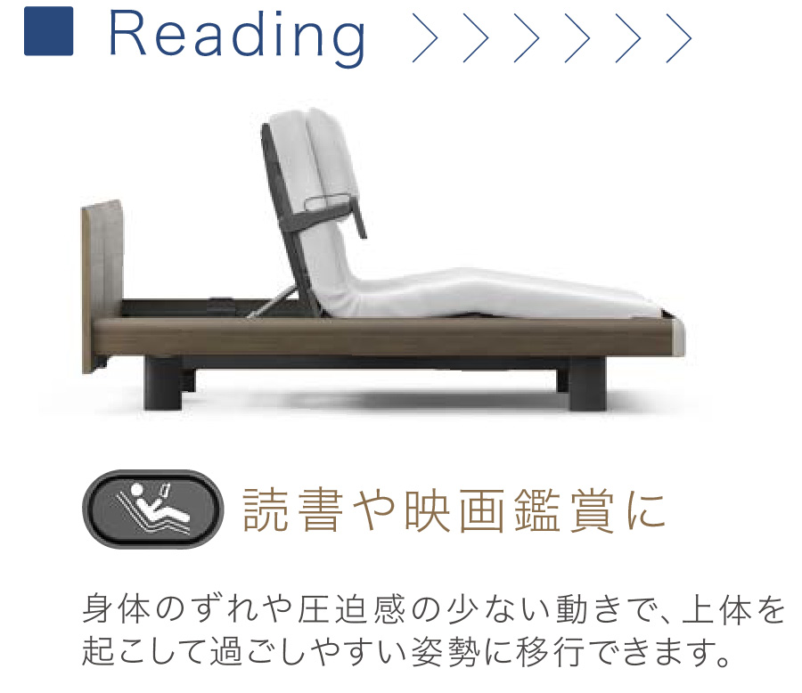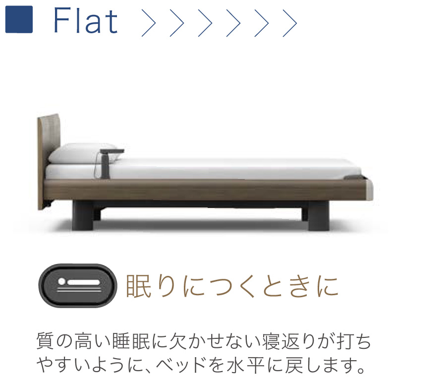 INTIME1000には、上体を起こして過ごしやすい「READING」、力を抜いてくつろぎやすい「RELAX」、寝返りのしやすい「FLAT」、3つのポジションが用意されています*1。