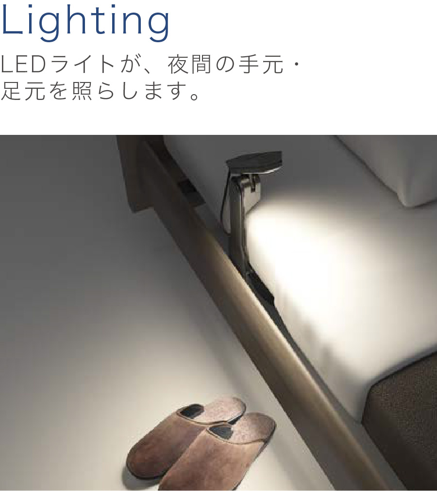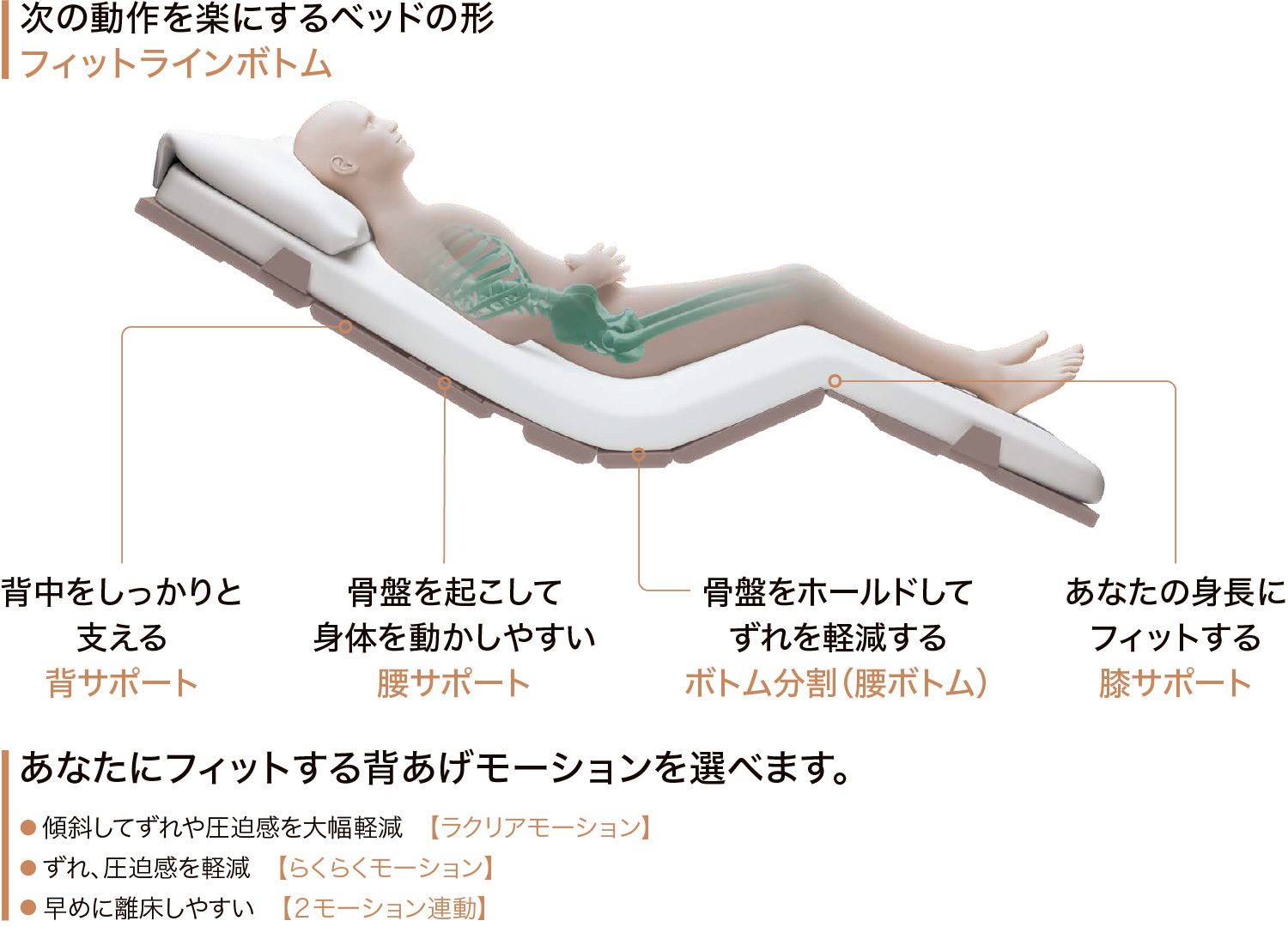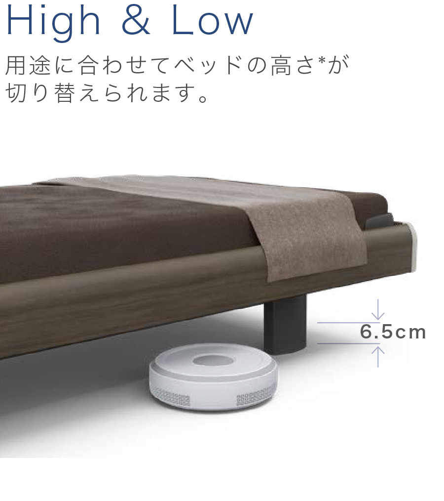 また、従来の電動ベッドと同じように、背の角度、膝の角度、ベッドの高さ*2を個別に調節することもできます。