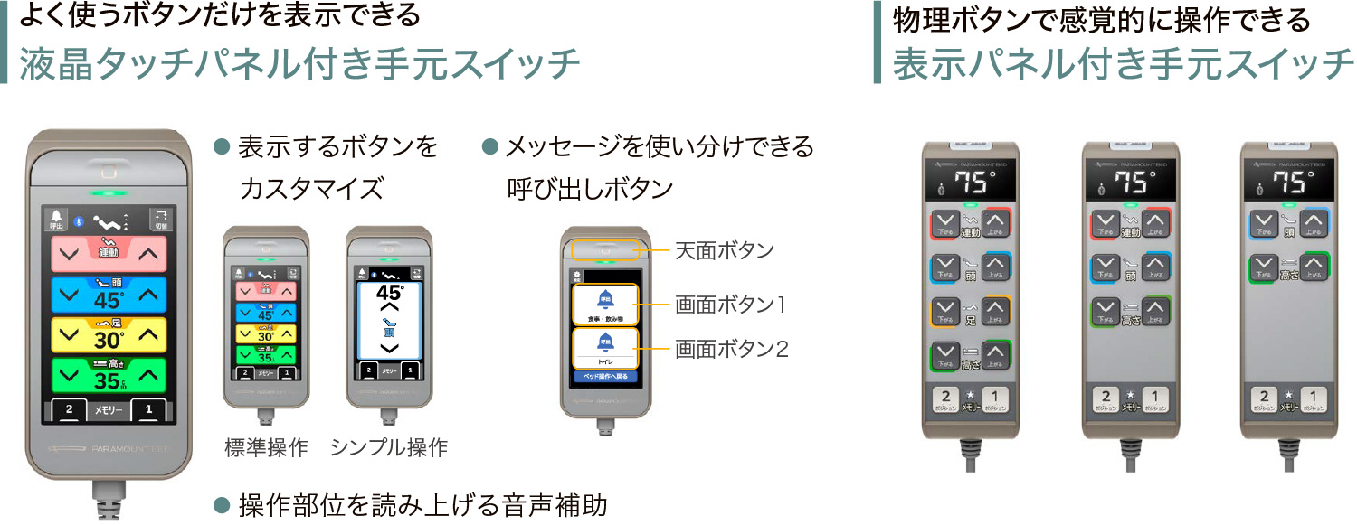 *1 Aタイプ手元スイッチのみ。 *2 ベッドの高さ調節は3モータータイプのみ。