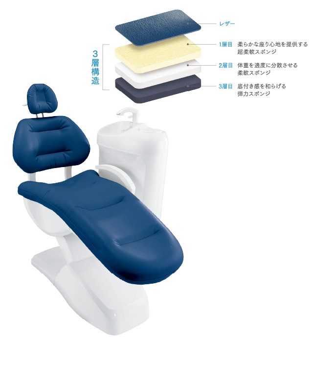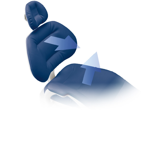 患者さんに爽快感を提供する快適機能です。チェアの動作と連動し、シートから心地よいエアーを送風。緊張を伴う診療でも快適にお過ごしいただけます。