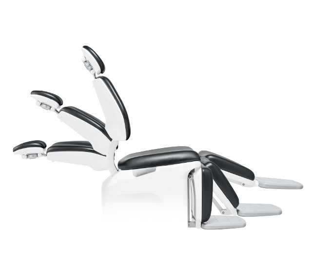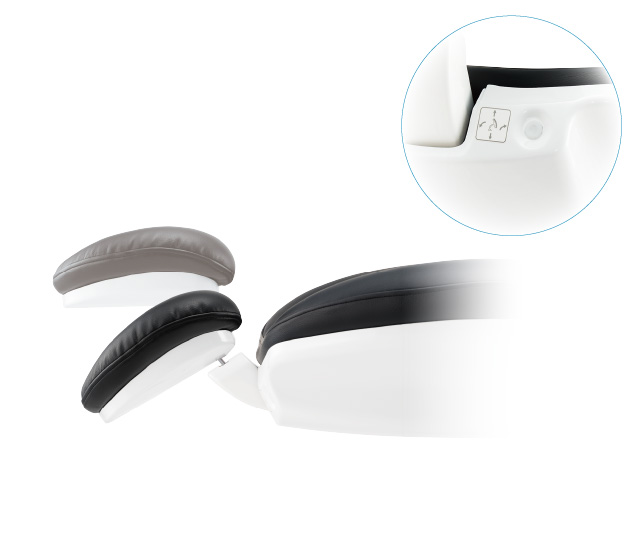 チェア動作と連動し、ボタン一つで設定したポジションへ自動調整します。頸椎をやさしく支えながら開口しやすい姿勢を確保します。治療中もスイッチやフットコントローラーで微調整が可能です。