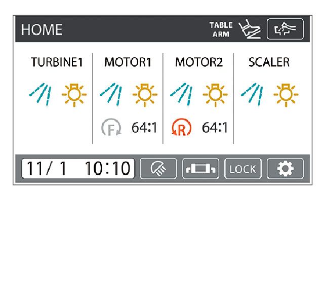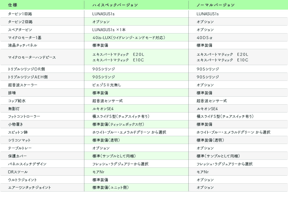 ◎タービン1回路:ルナサス1s ◎マイクロモーター1基:40DSα[内部注水] ◎マイクロモーターハンドピース:E10C/E20L