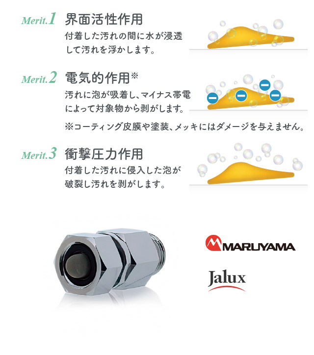食品工場やシャワーヘッドなどに用いられる、微細で高濃度な気泡「ウルトラファインバブル」発生装置を、歯科医院のユニットに取り付けることができます。花粉よりも小さい0.001㎜(1μm)以下の気泡は、浸透性と水自体の洗浄力が高く、患者さんのお口に入る水をより衛生的にします。