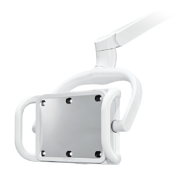 3軸可動により、臼歯部までしっかり照らすことができ、診療効率が向上します。治療説明やブラッシング指導を大きなミラーで患者さんの口腔内を映しながら行うことができます。色温度は4,500Kで、長時間の診療でも目に優しい自然な光を提供します。