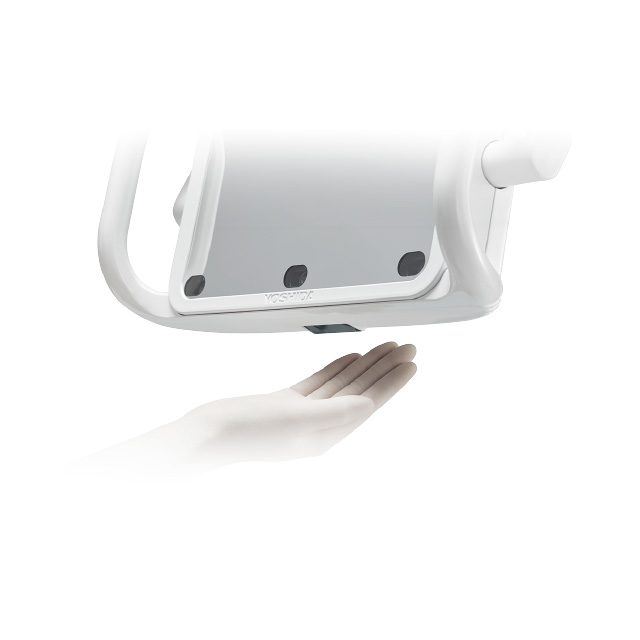 無影灯アームの動きを自動アシストする、モーションアシスト機能を搭載。診療開始時にライトが自動で術者の手の届きやすい位置まで下降し、終了時には自動で上昇します。手動の操作が不要になり、スムーズで効率的な診療を実現します。