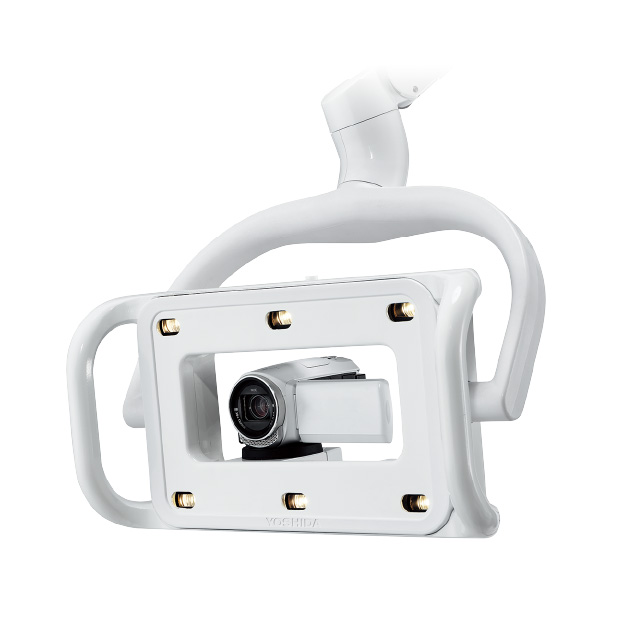 無影灯の中央部にビデオカメラを搭載可能。さまざまなサイズのカメラに柔軟に対応し、高い視認性と記録性を両立します。