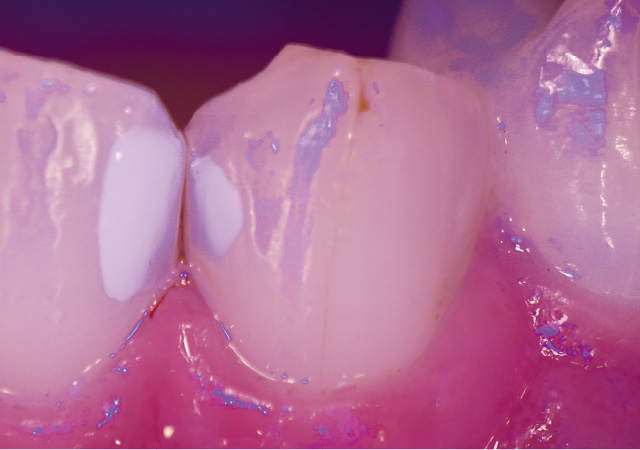 ブルーライトにより、直視では認識しづらい余剰セメントまで把握できます。より精細な治療をサポートします。