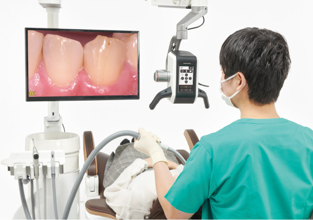 撮りたい角度から、シンプルな操作で、自由自在に撮影可能です。空間的なゆとりも生まれ、楽な姿勢のまま診療を続けることができます。